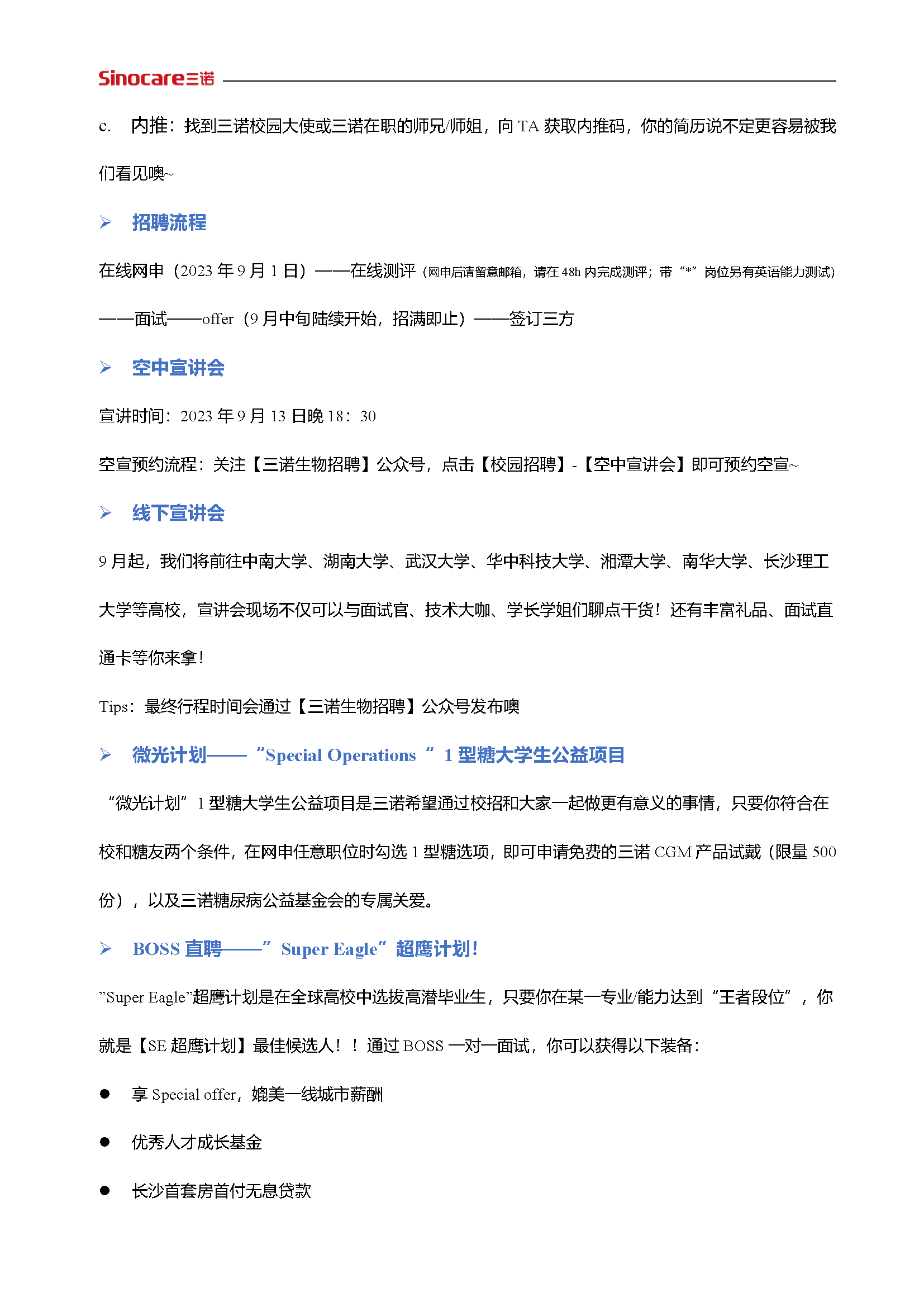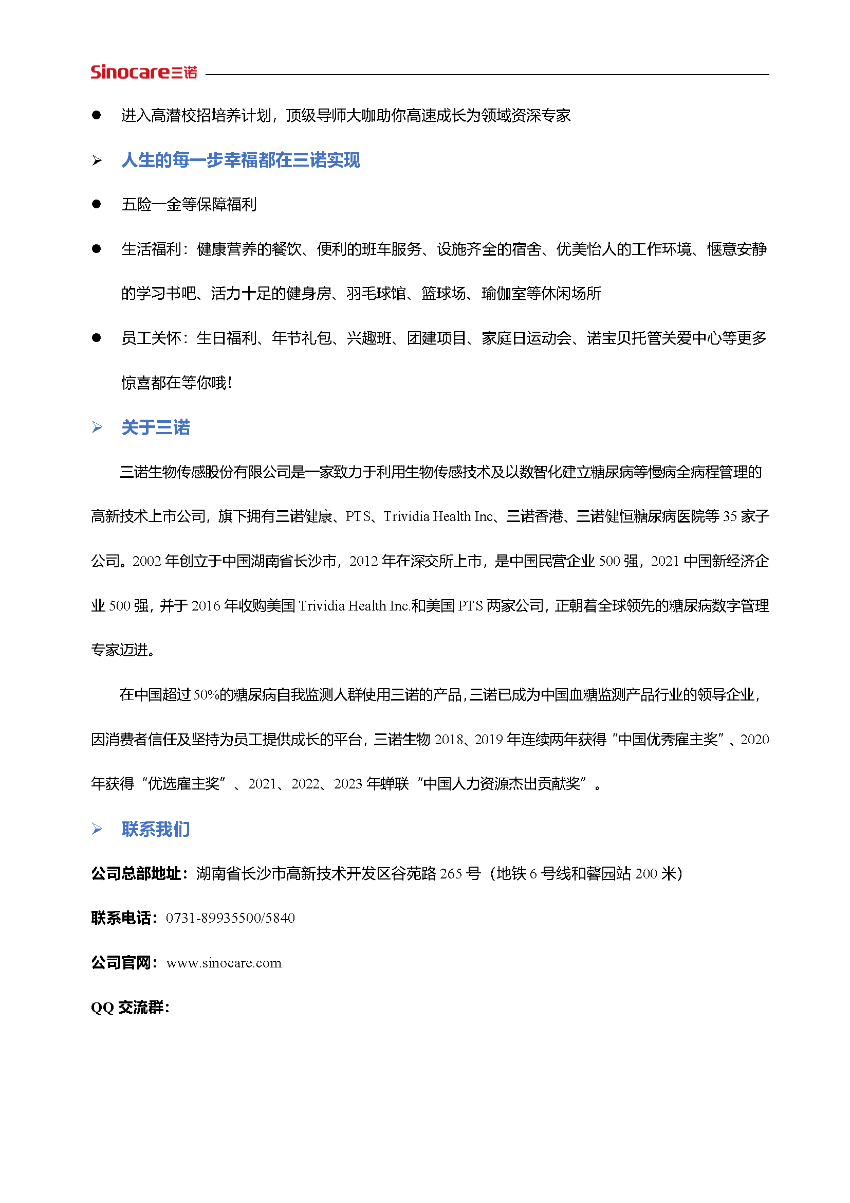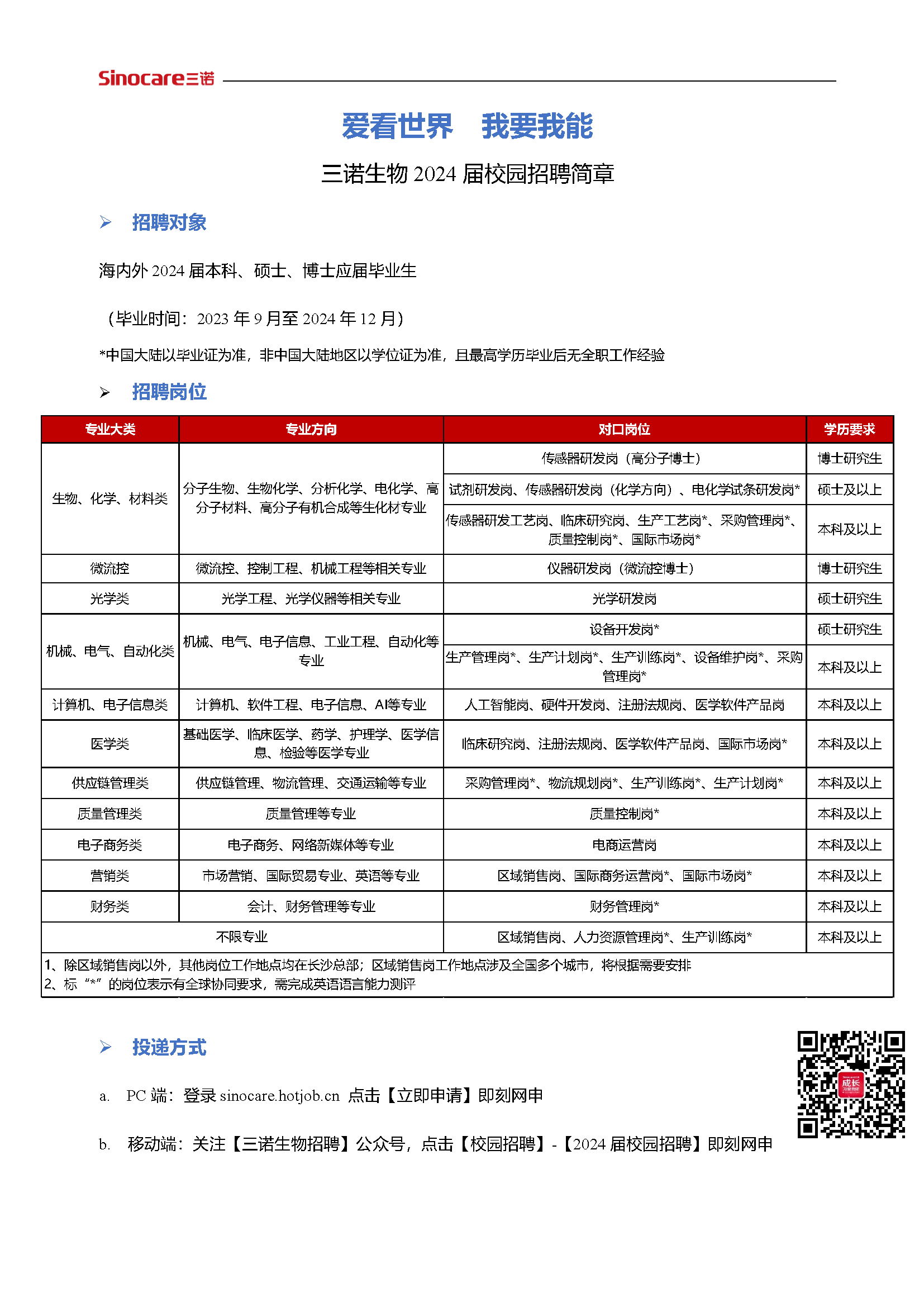 | 接收邮箱 | campus@sinocare.com | 网申地址 | sinocare.hotjob.cn |