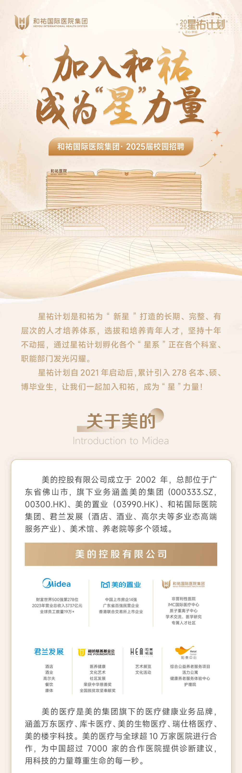 【青春启航 职向未来】美的控股和祐国际医院集团2025届春招正式启动!