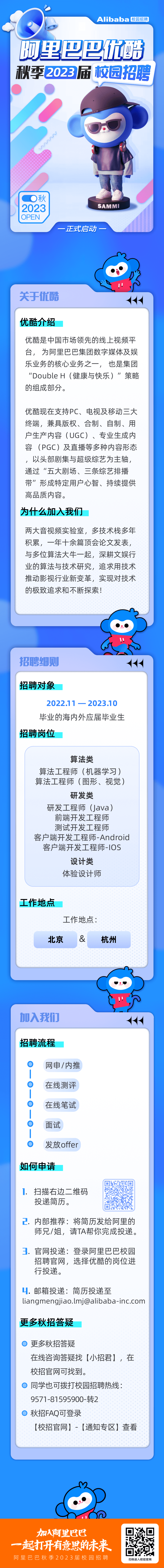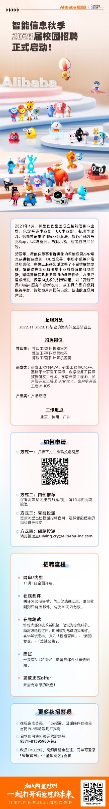 同学你好!阿里巴巴秋季2023届校园招聘火热进行中,欢迎2023届同学投递。